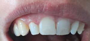 Jedno zdjęcie po pożegnaniu próchnicy, gdy zostały „dziury”, a drugie po uzupełnieniu ubytków.